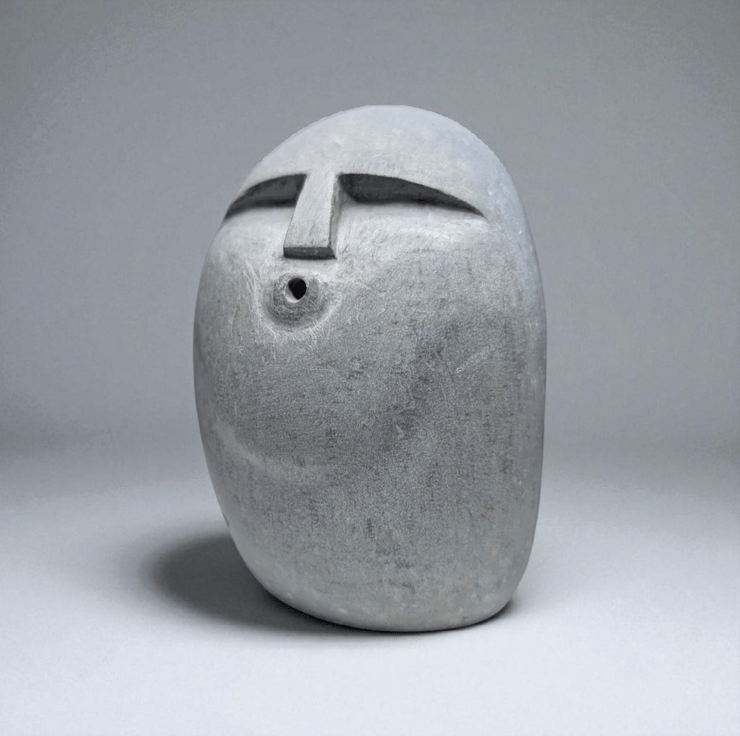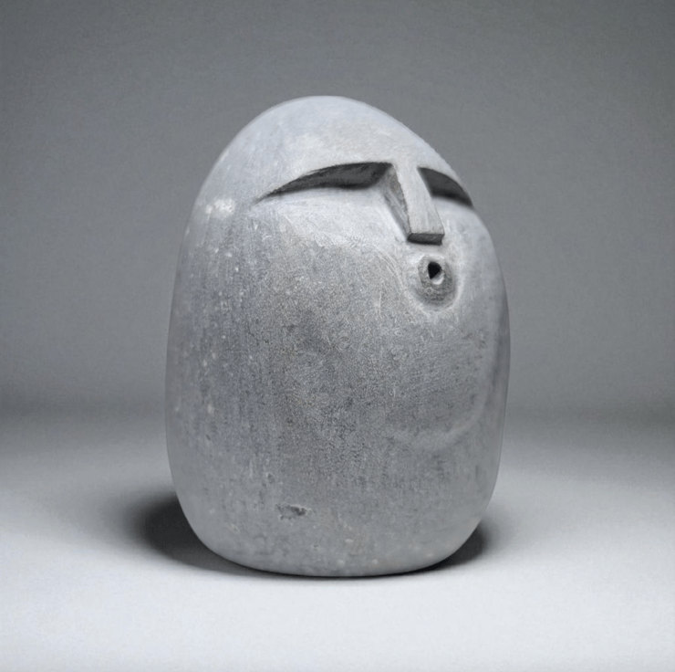 Stone Ooof Face Sculpture – Hand-Carved Natural Limestone Pebble