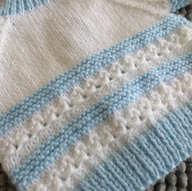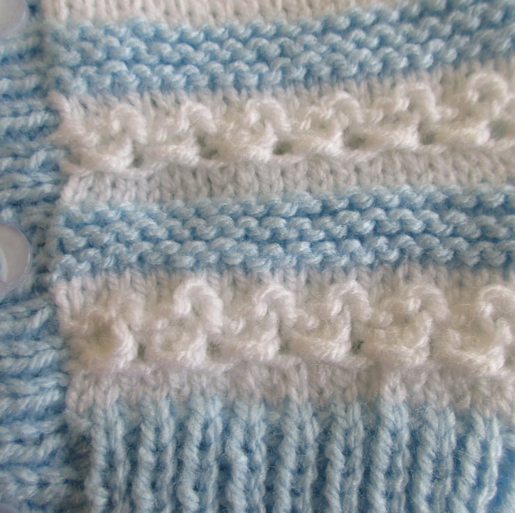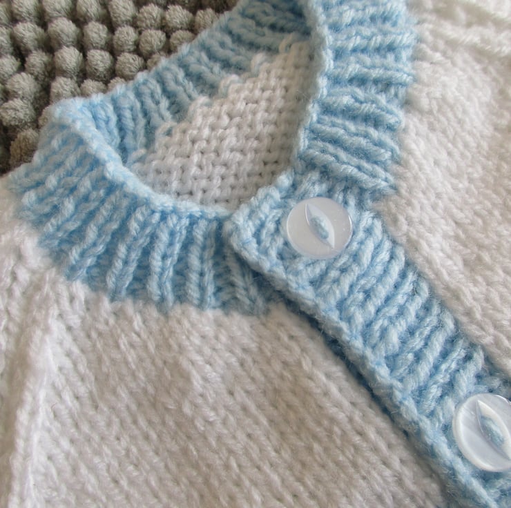 14" White & Blue Newborn Boys Round Neck Cardigan