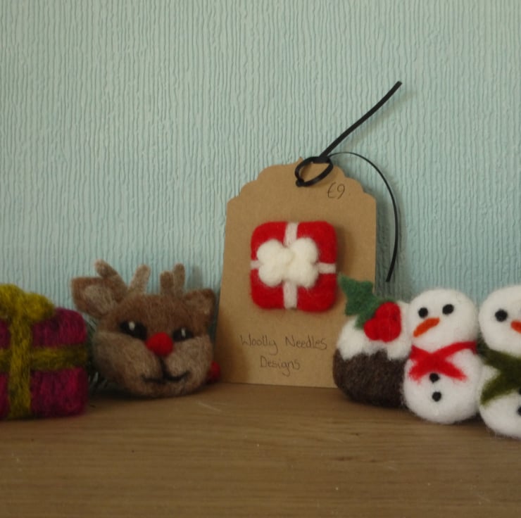 Handmade needle felted brooches in a mix of designs. Each is made completely from natural and dyed wools and has a metal brooch back. There are only one of each design. Choose from the options available: