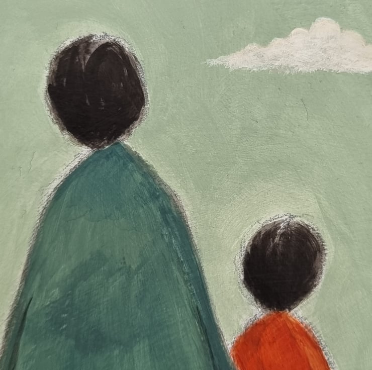 Small Original Illustration Painting (Unframed) - Mother And Daughter Art Gift