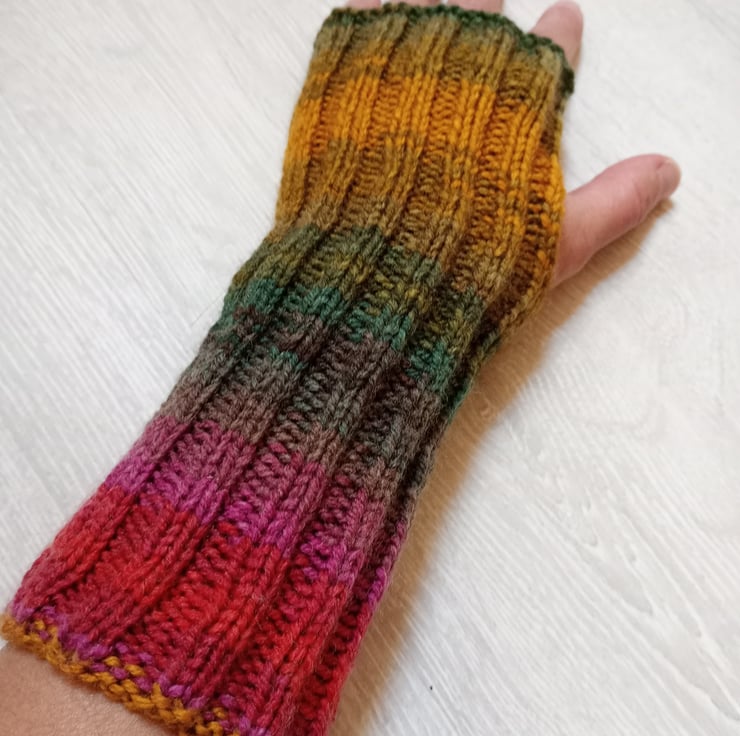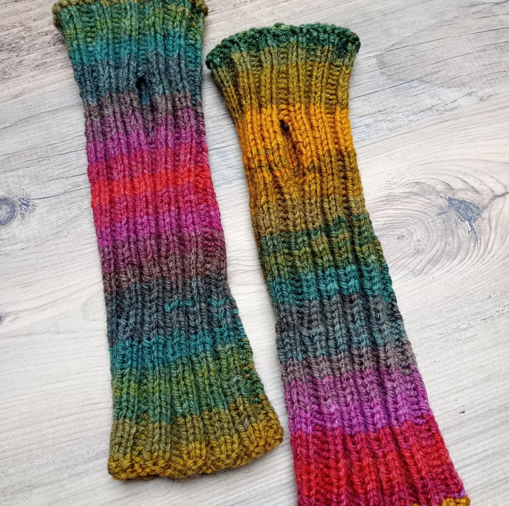 Made to order, Muted Rainbow Hand-knitted Wrist Warmers