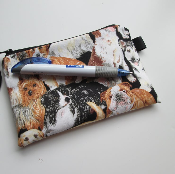 Make up bag / pencil case with contrasting zipper and ribbon and lining