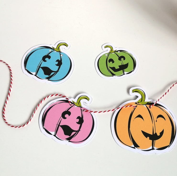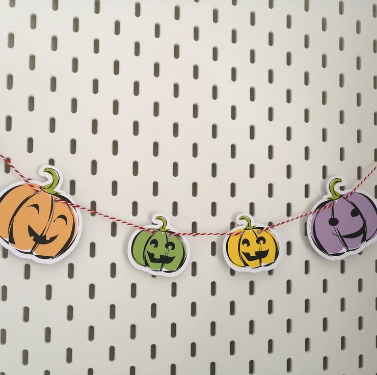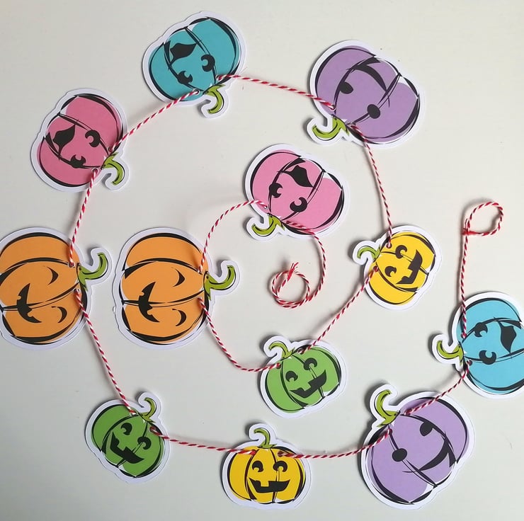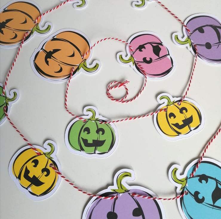 The 'pumpkins' will be provided separately for you to add to the twine when ready to display. (The photos show an example of how the bunting could look once attached on the twine and please note this is made of card, not fabric)