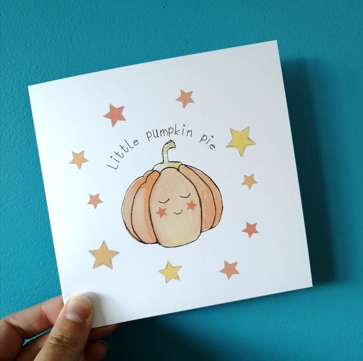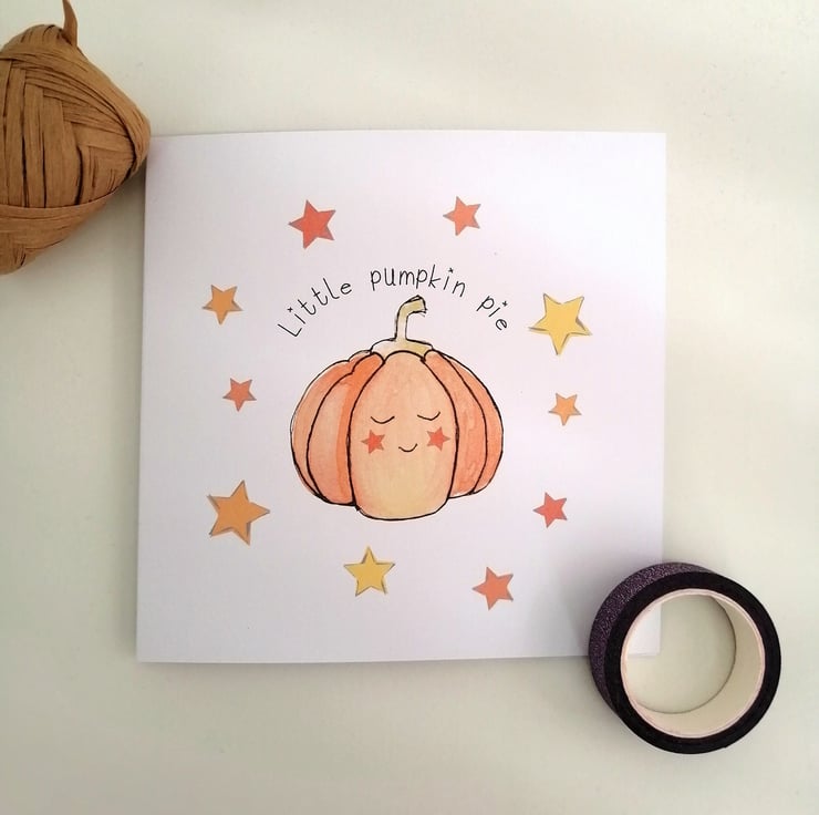 Little Pumpkin Pie card, Autumn Birthday card, Pumpkins card, First Halloween