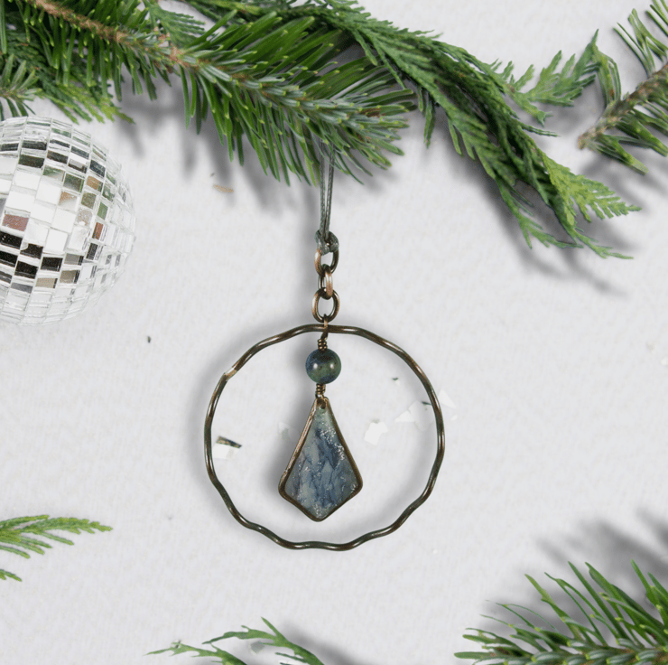 Hanging Decorations, Copper and Blue Marbled Clay with Chrysocolla Gemstone