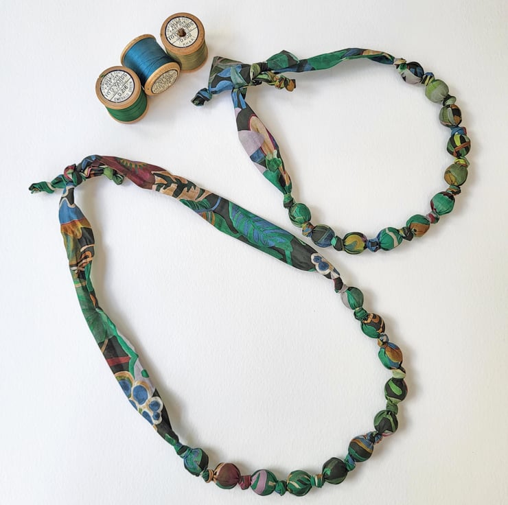 Green, Brown & Blue Liberty Print Fabric Necklace - Jungle Trip