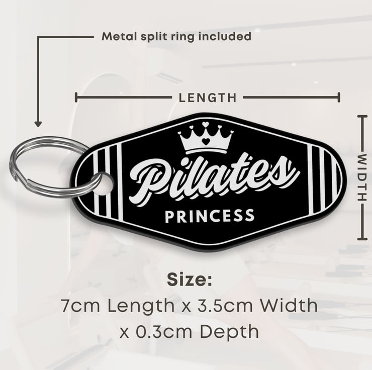 Celebrate your Pilates practice in regal style with this Pilates Princess Crown keyring. The motel-inspired acrylic tag features a bold crown design, perfect for adding character to your keys, gym bag, or tote. A thoughtful and fun gift for Pilates lovers, friends, or instructors.