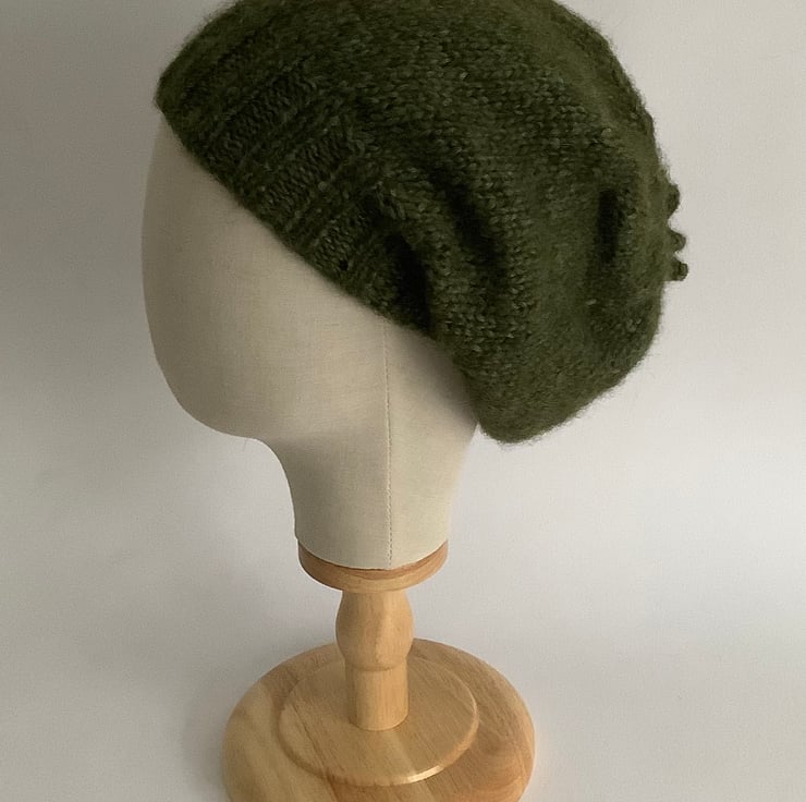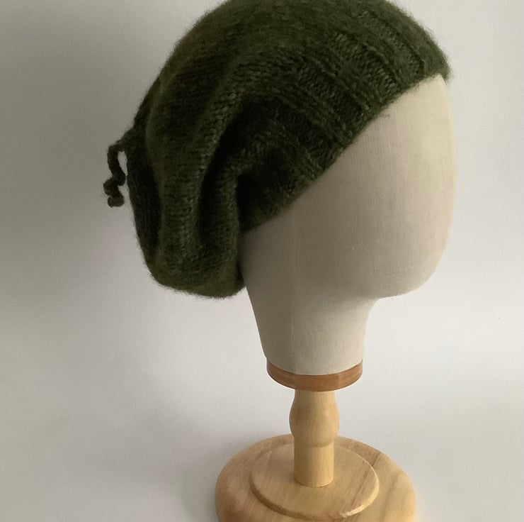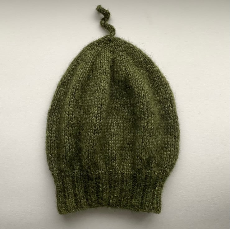 I have designed and knitted this slouch beanie / slouch hat in a delightfully soft, baby alpaca/ merino wool blend yarn . I've also added a cute little corkscrew curl to the top ! Very lightweight but super-cosy.