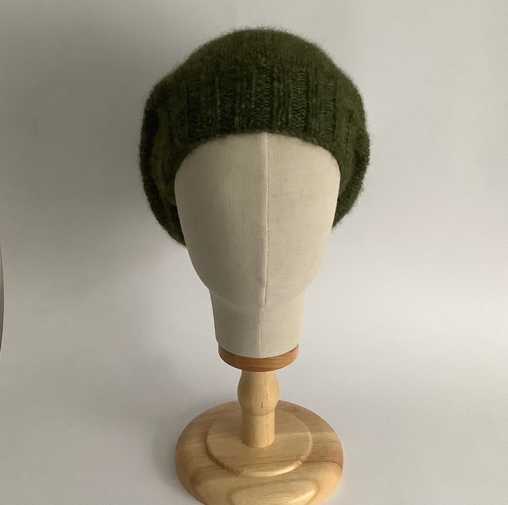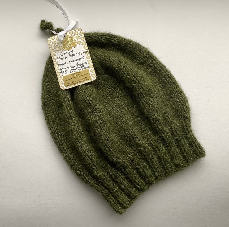 SLOUCH BEANIE .Hat  'Elodie' . Luxurious baby alpaca , merino blend . Evergreen.