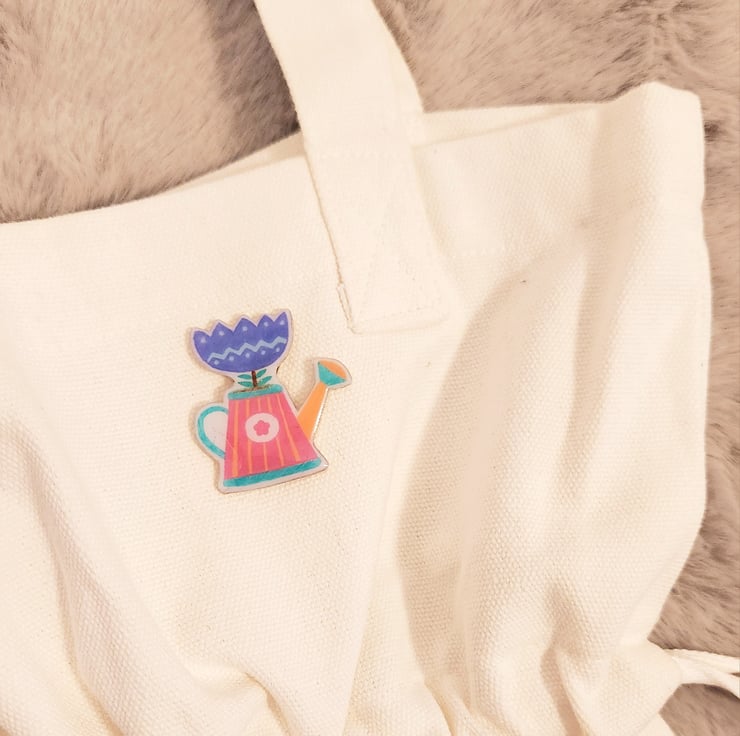 - This is a handmade pin made from shrink plastic, the glossy has a layer of UV resin on top