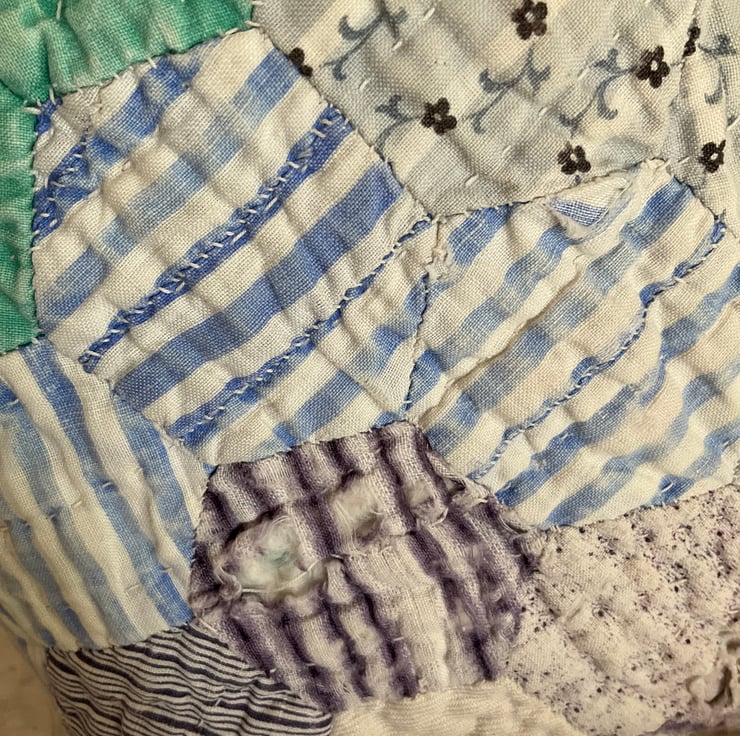 Please note that the antique quilt used to make this bag has wear, commensurate of the age of the fabric, but only adds charm to the finished item. Please do not purchase if you prefer your fabrics to be perfect.