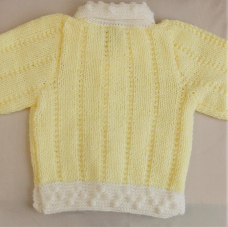 Hand Knitted Yellow and White Baby Cardigan With a Bobble Pattern, Baby Cardigan, Baby Clothes, Baby Gift, Baby Accessories, Knitted Baby Clothes, Birthday Gift