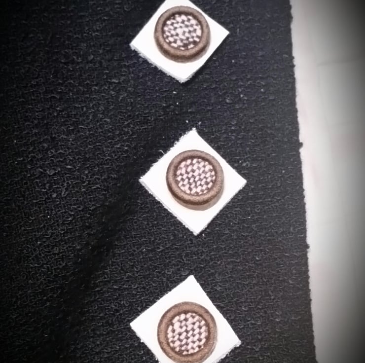 Just love a cosy collar and loved dogtooth pattern when I was young in the sixties. Ladies getting cold when wanting to look spiffing for the theatre; opera or ballet. Very feminine. Had fun designing cape and especially buttons.
