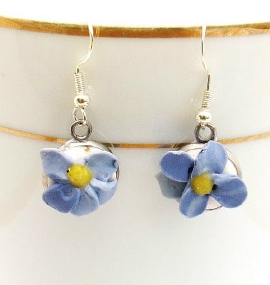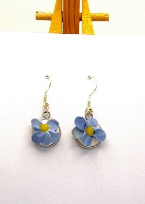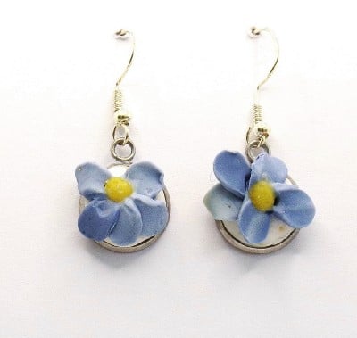 Pretty and feminine dangle earrings. I have handcrafted these earrings from polymer clay placing each petal individually onto a white polymer clay background. The earrings have a sliver plated back and silver plated shepherd hooks