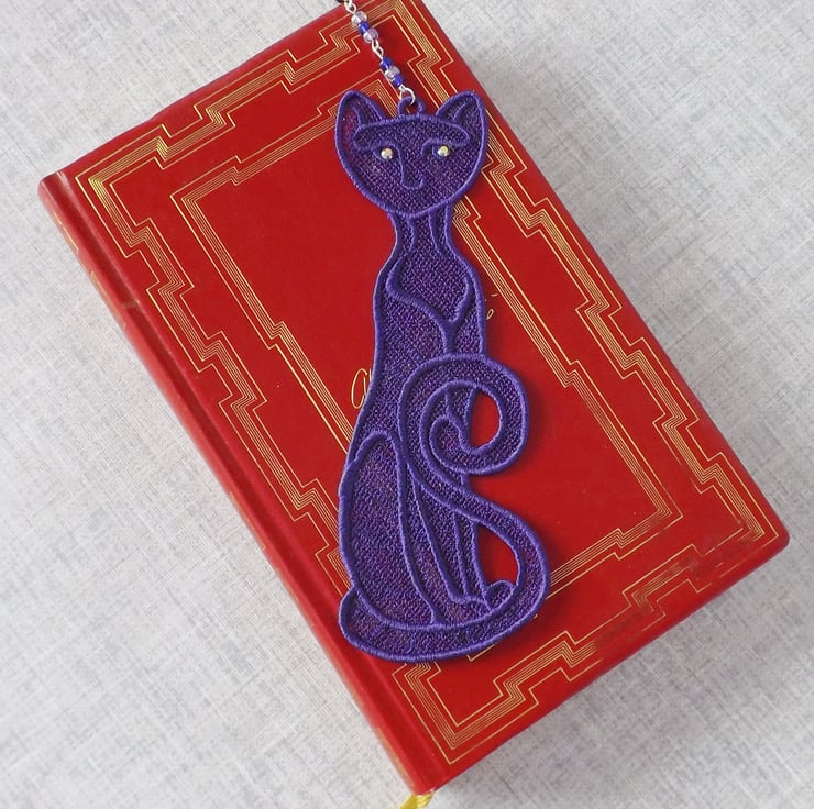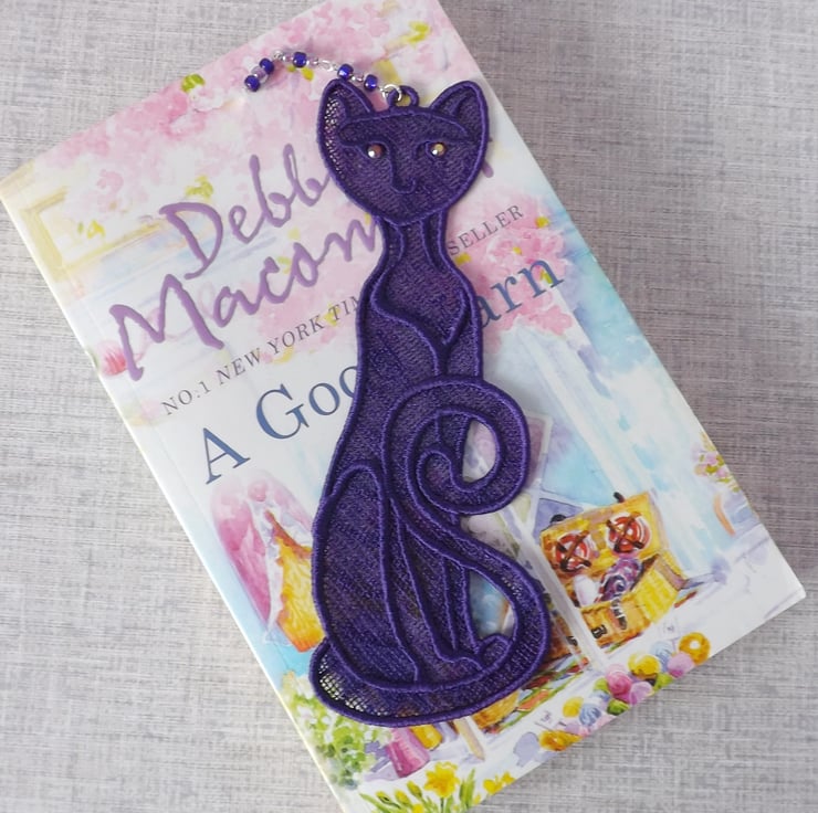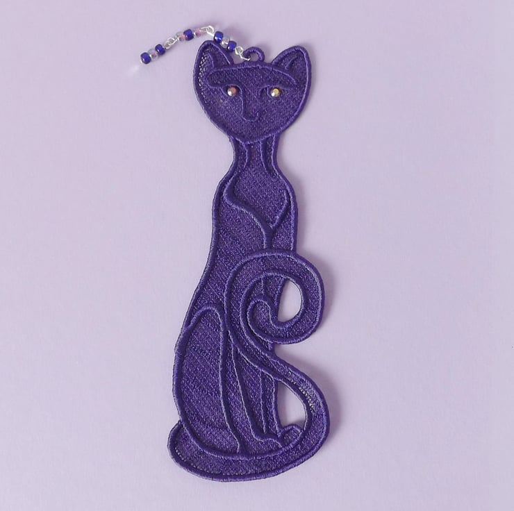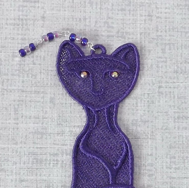 Embroidered lace cat bookmark.