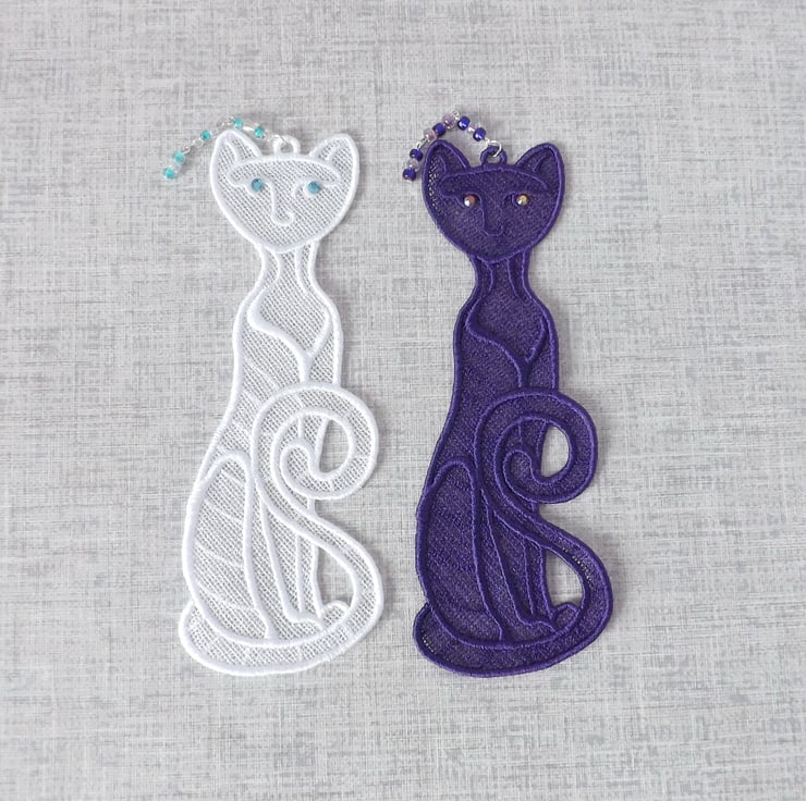 Bookmark, cat bookmark, embroidered lace.