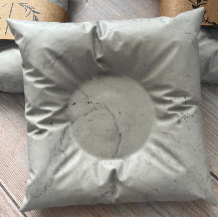 This piece was inspired by the beauty of simplicity—those quiet moments when calm settles in and light gently fills a space. The cushion shape evokes softness and rest, while the subtle grey marbling mirrors the shifting tones of early morning skies or weathered stone—natural, grounding, and timeless.