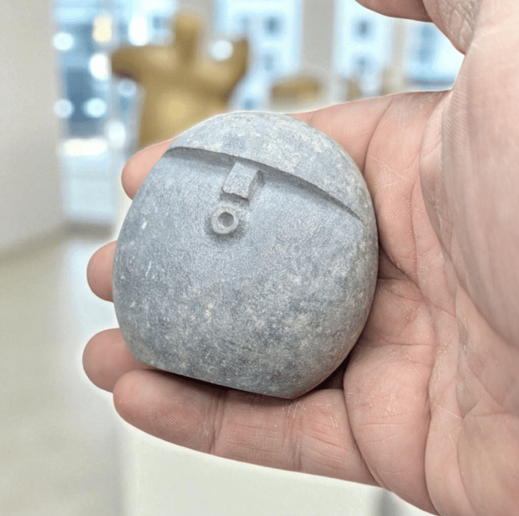 This piece celebrates the natural shape of the stone while adding the unmistakable expression. Whether as a gift or a personal desk buddy, this sandstone character is sure to raise a smile and bring a little humour into any room.