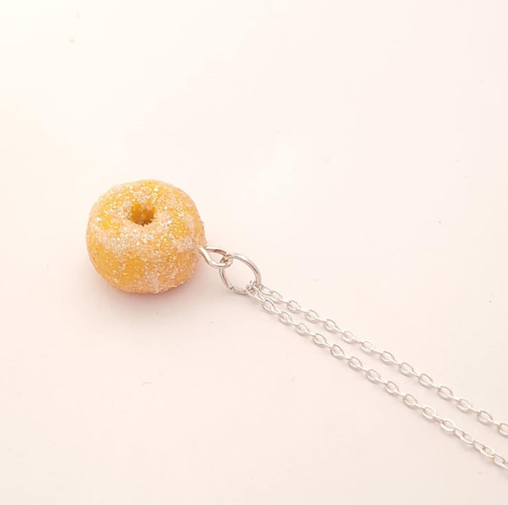Add a sprinkle of sweetness to your jewellery collection with this handmade sugar donut necklace. Lovingly crafted from polymer clay, this cute miniature food pendant looks just like a real donut – complete with a sugary finish that makes it almost irresistible!