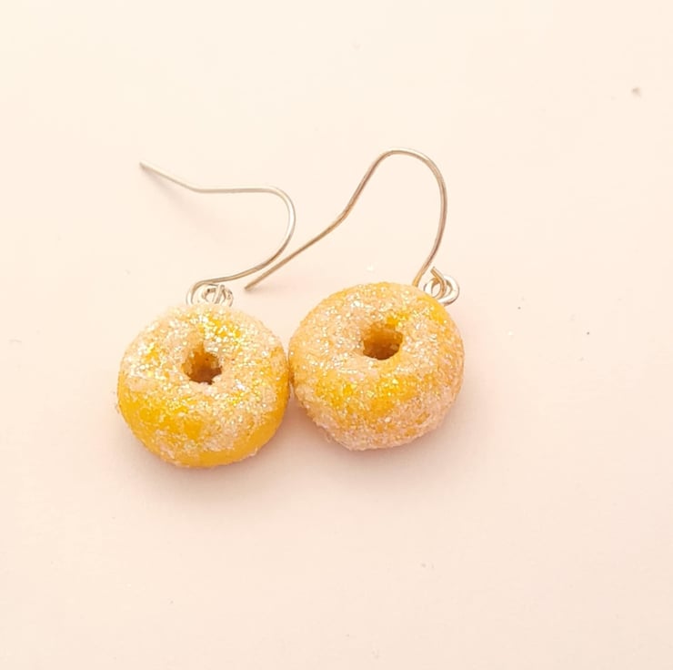 Handmade sugar donut earrings crafted from polymer clay