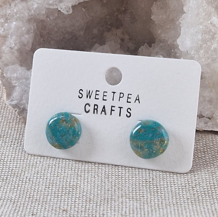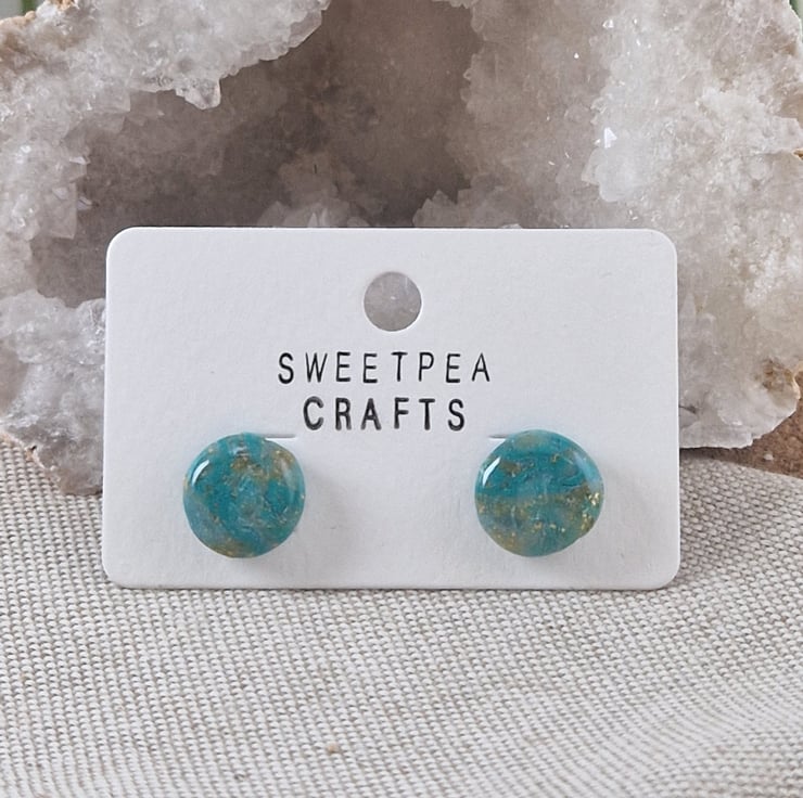 Handmade with care, these stud earrings are crafted from lightweight polymer clay, making them comfortable enough to wear all day. Each pair is unique , no two are exactly the same , giving you a truly one-of-a-kind accessory. Approximately 12mm.