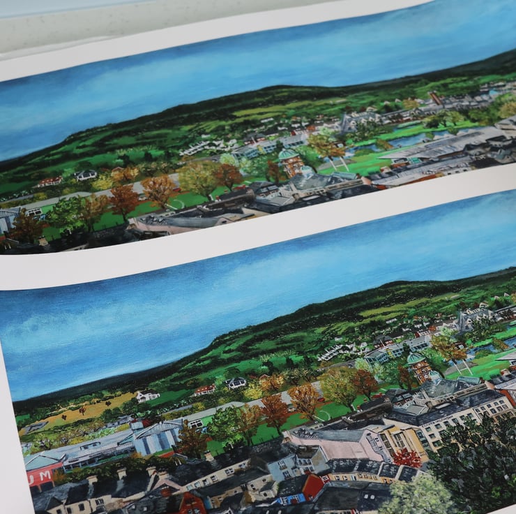 The print from my painting is a section of the amazing 360 degree view you get from the top of Cole’s Monument in Forthill Park. You can walk round the viewing platform and get a spectacular view of the stunning island town of Enniskillen and beyond.