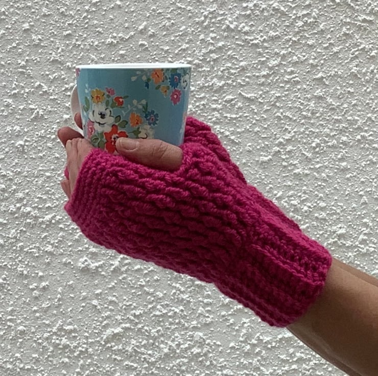 I have designed and crocheted these fingerless mitts 'The Erme Trail' using a lovely, wool blend yarn .Lightweight , yet the textured stitch give a thicker feel . Warm , cosy and practical too. .