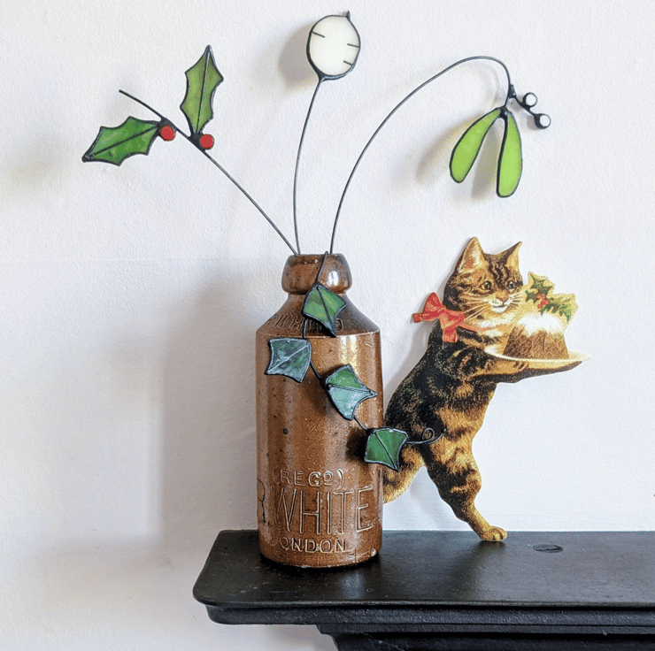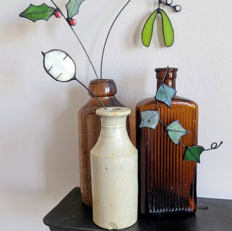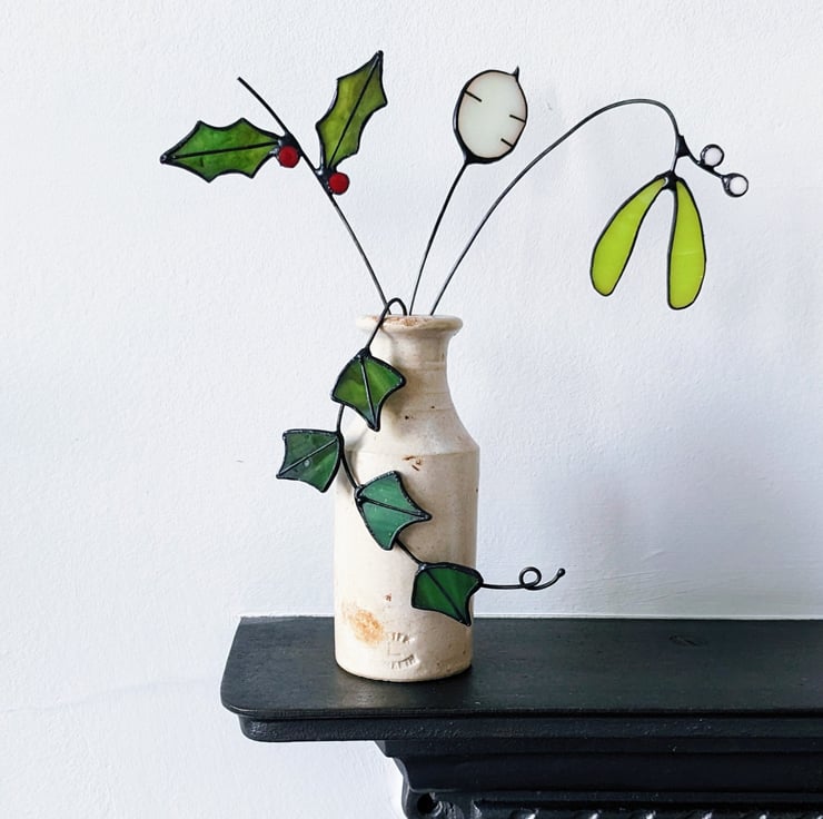 Build your own stained glass Christmas flowers bouquet, a beautiful table centrepiece, choosing from the following stems: