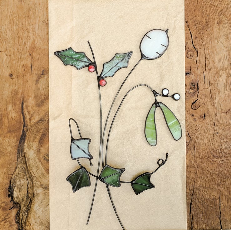 Holly, Mistletoe, Honesty (cream) and Ivy (vine).