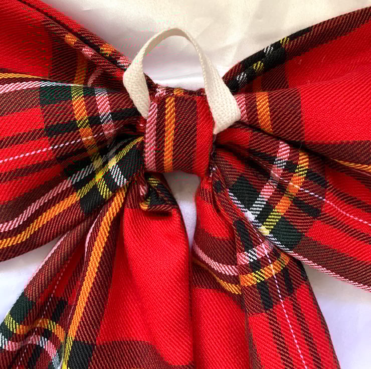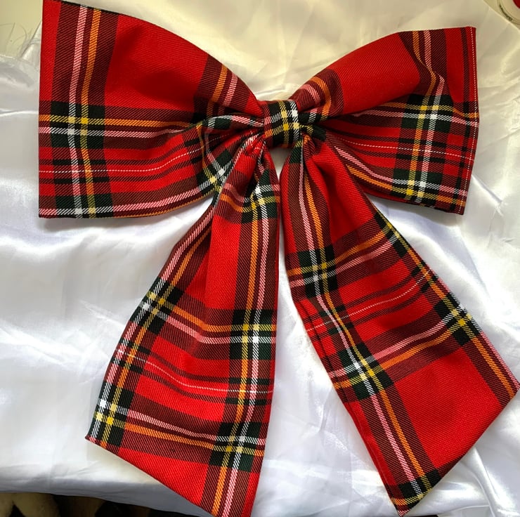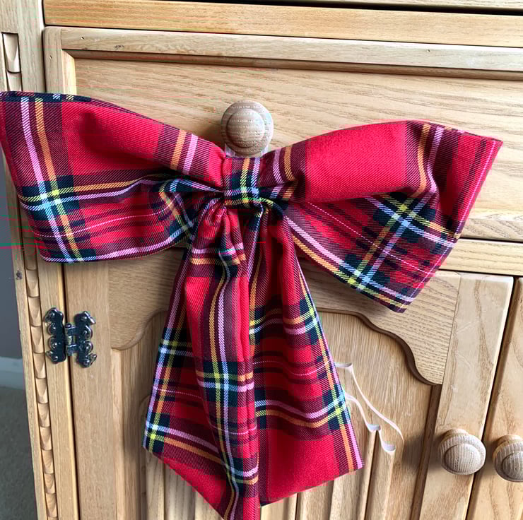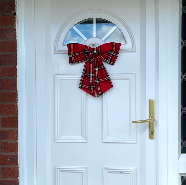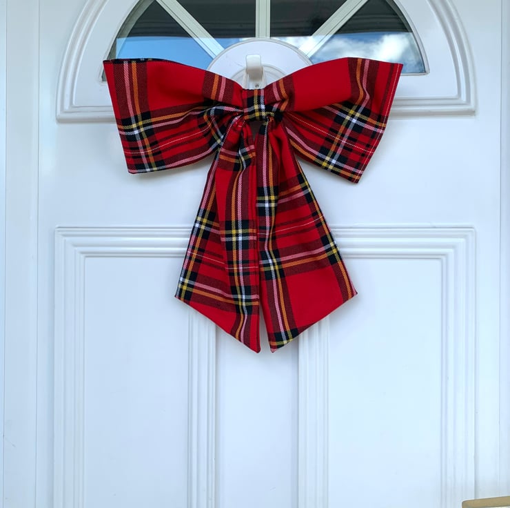 This beautiful Christmas door bow is hand cut from a piece of red tartan fabric.