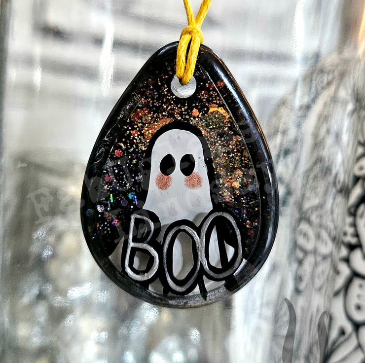 I thing it's clear, unless you're new here ( if so, welcome) that I love Autumn and spooky season. I primarily paint glass but have been dabbling with setting my work inside resin. I started with hanging tree decorations and wondered- how small can I go?