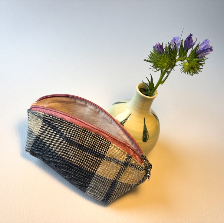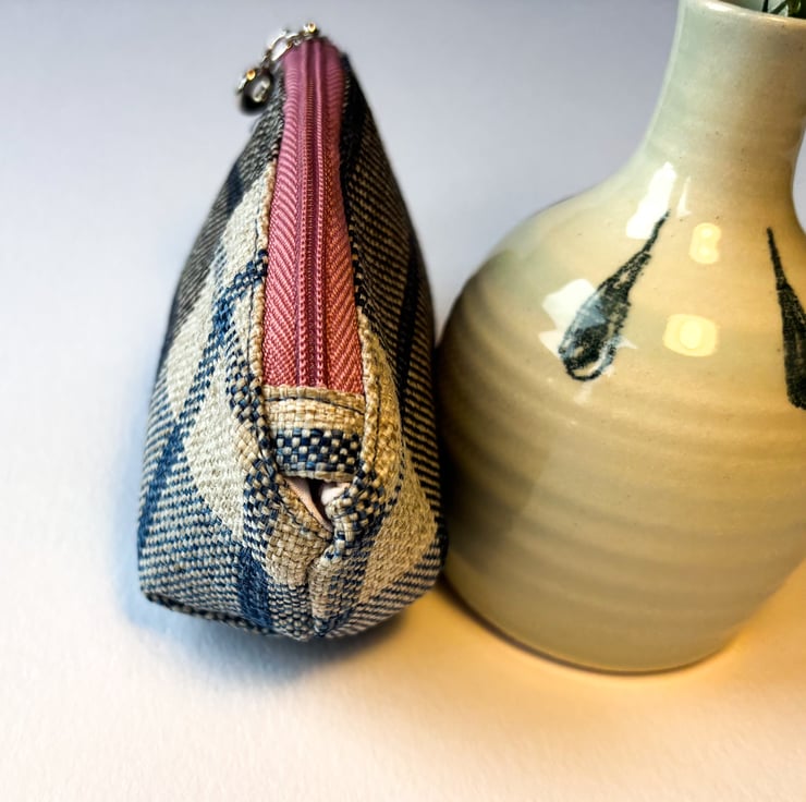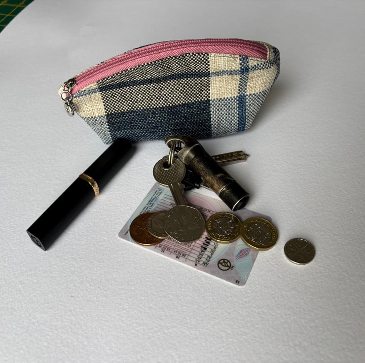 This cute purse is made from blue check upholstery fabric, so it’s definitely robust!