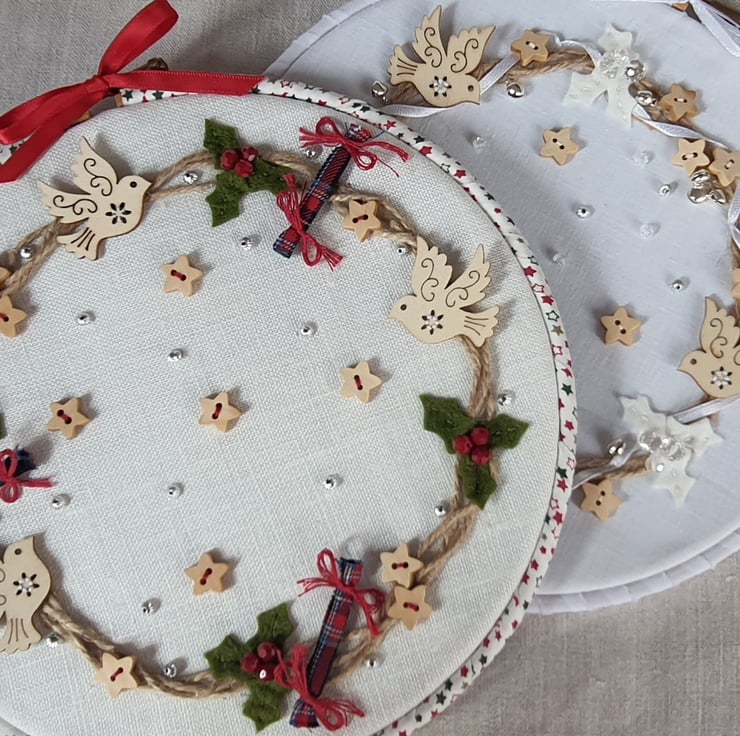This year, our annual Christmas Crafternoon Tea Workshop in aid of MacMillan will be making a Christmas Wreath themed wall hanging mounted in an embroidery hoop.