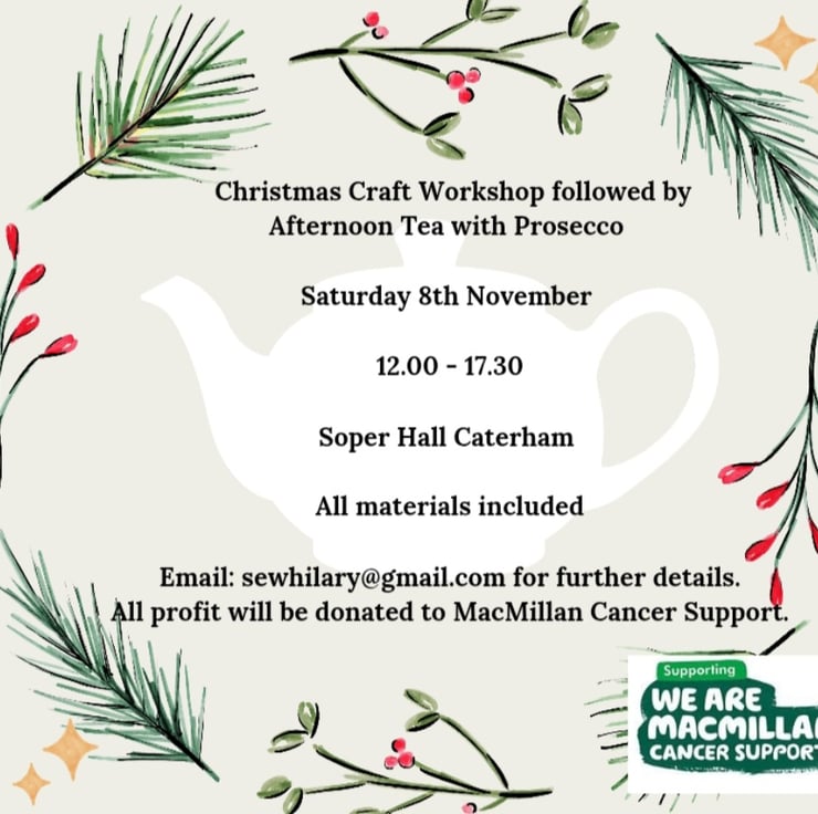 I have been running craft workshops in aid of MacMillan for the past 9 years after my husband was diagnosed with stage 4 cancer of the larynx. He received life saving surgery performed by an amazing surgeon at the Queen Victoria hospital in East Grinstead and we were both so thankful for the support we received from the MacMillan nurses. This is my small way of repaying them. A couple of years ago I decided to add afternoon tea to the workshops and it really is the perfect way to round off the day!