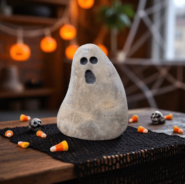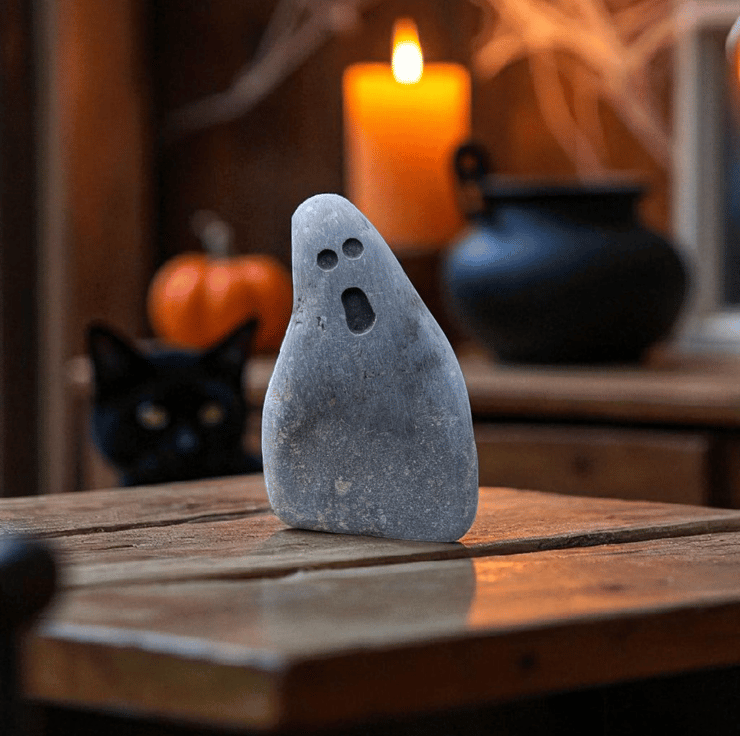 These little Ghost stones are perfect for Halloween. They have flat bases so they do stand up. They come in all different shape but as pictured they all have a ghostly looks.