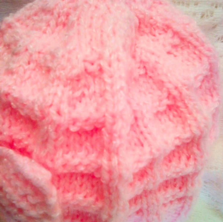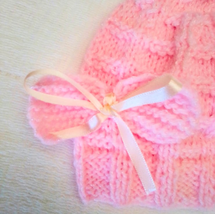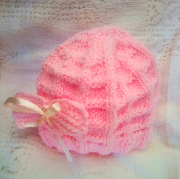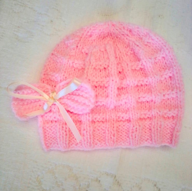Baby's Hand Knitted Hat with Bow Decoration, Pink Baby Hat, Baby Hat with Bow, New Baby Gift, Baby Shower Gift, Baby Clothes, Baby Accessories, Baby's Hat