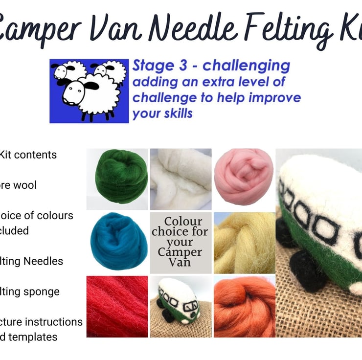 Learn how to create a 3D needle felted camper van with step by step picture instructions and templates. This kit is one of our challenging kits a level 3 kit.