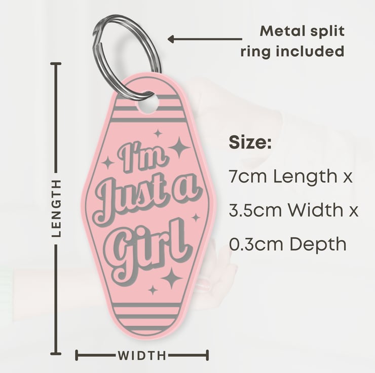 Shine a little brighter with this “I’m Just a Girl” star design motel-style keyring. With its bold lettering and star accents, it’s the perfect mix of retro nostalgia and playful design. Inspired by vintage hotel key fobs, this acrylic keychain is lightweight, practical, and stylish enough to be used every day. Attach it to your keys, handbag, or backpack to add a little sparkle and personality wherever you go. It’s a great little gift idea too – perfect for birthdays, party favours, or stocking fillers.