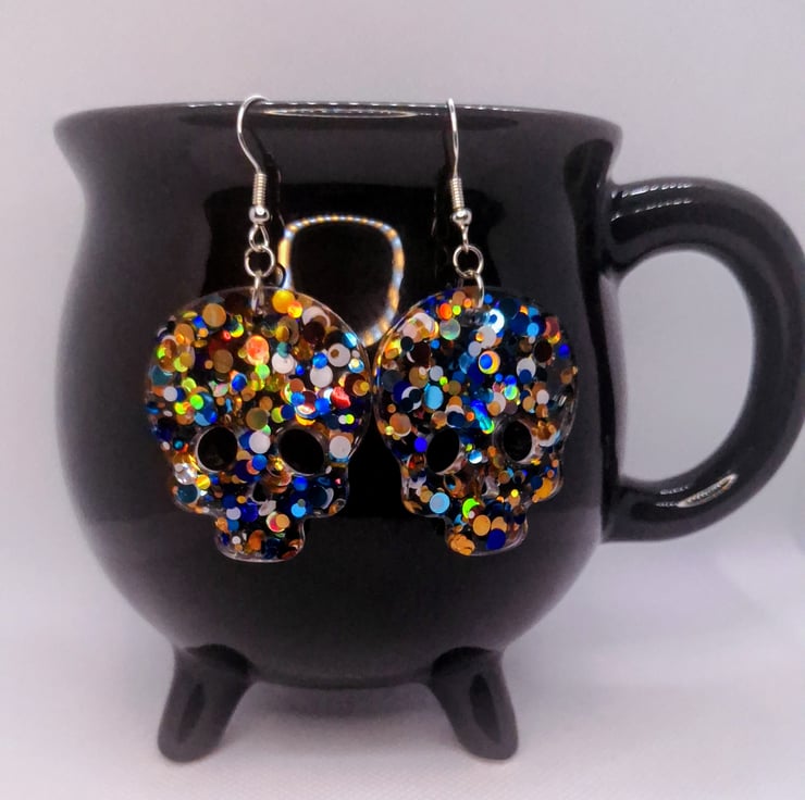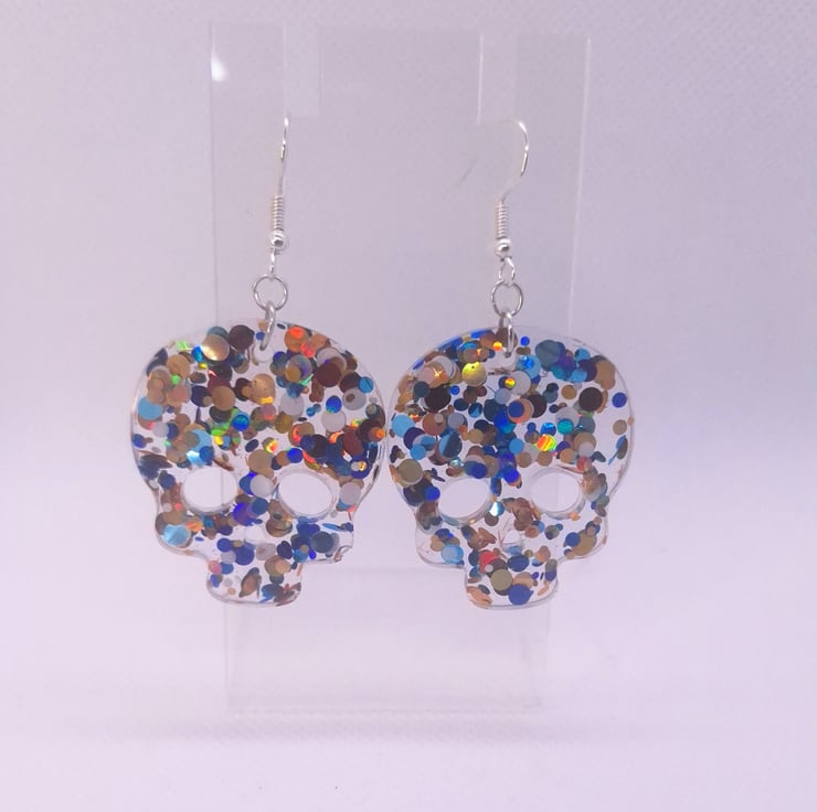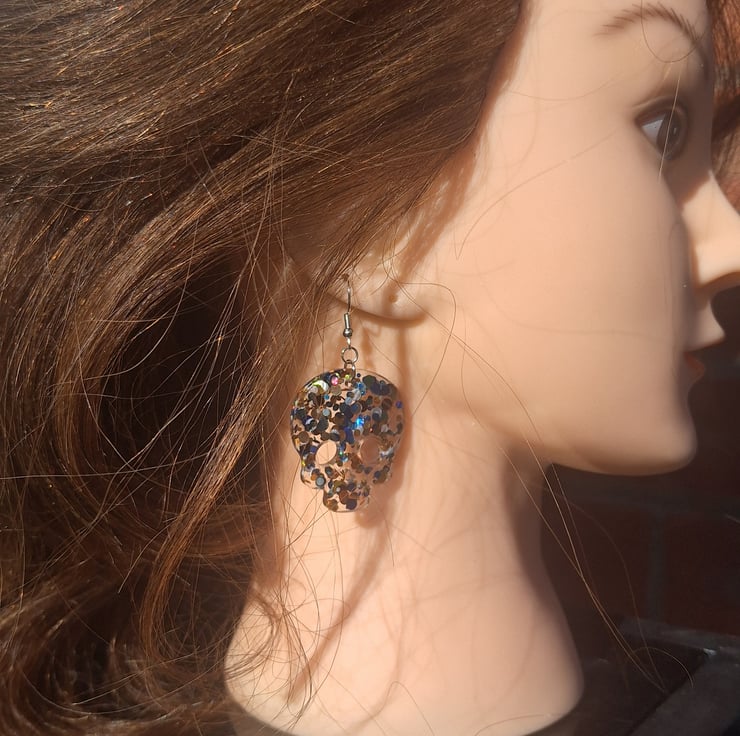 Clear and sparkly resin filled skull earrings, perfect for Halloween, or any time of the year if you're a fan of the Gothic persuasion!