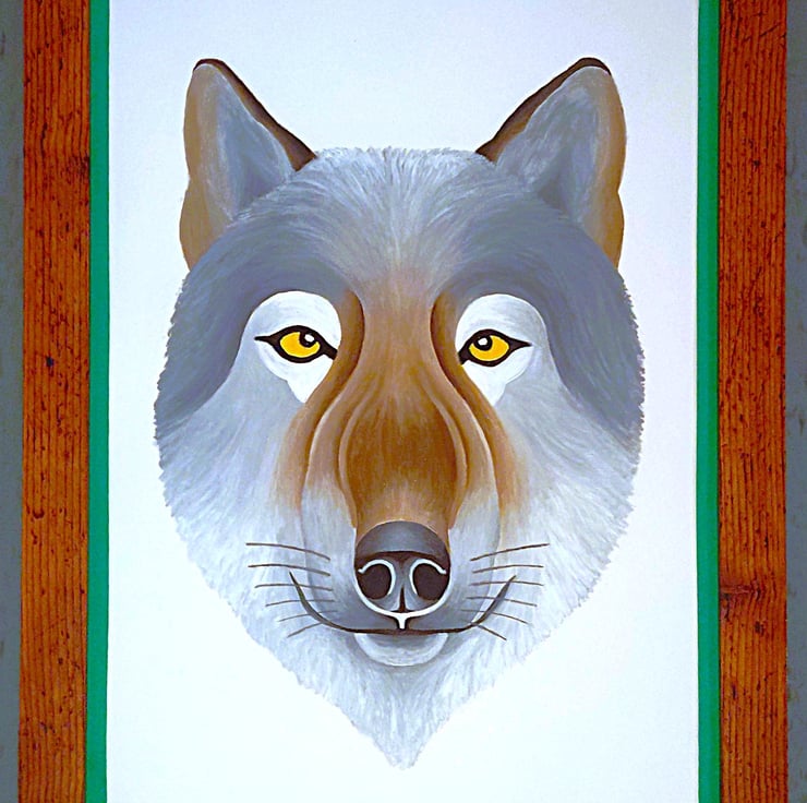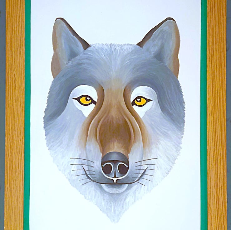 Framed high-quality coloured A3(42cm x 30cm) Giclee print of my painting of a wolf's head/portrait on a white background with a hard backing. The print comes finished with a stylish, contemporary dark green border. Framed with an expensive Styrene Protective Perspex (which has same clarity of glass) ready to hang. Buyer can choose from three types of frame; Black, Oak or Dark Oak. Colours of print with border may differ slightly due to computer/phone settings. All purchases delivered within 7-10 working days.