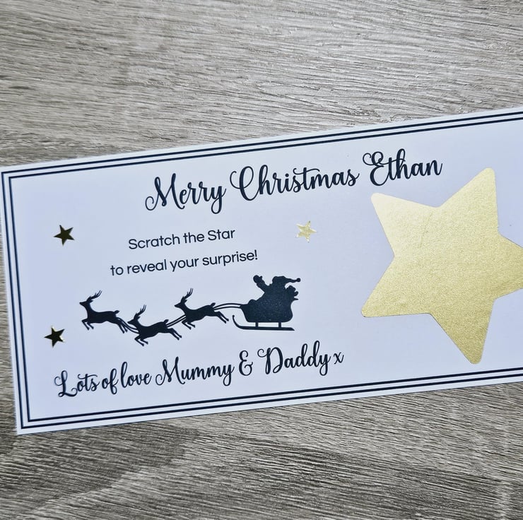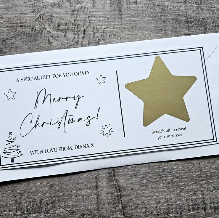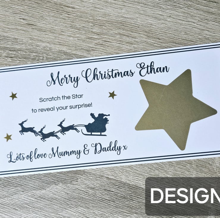 Thie can be personlised to say whatever you wish, please just enter this info into the personalisation box or drop me a message to disucss. Please bare in mind that under the scratch star space is limited so your surprise message needs to be as short as possible.