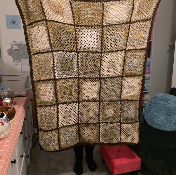 Beautiful handmade classic crochet lap blanket or throw. Its a lovely mix of browns, creams and neutral colours. This lap blanket is called Choclate Oat!