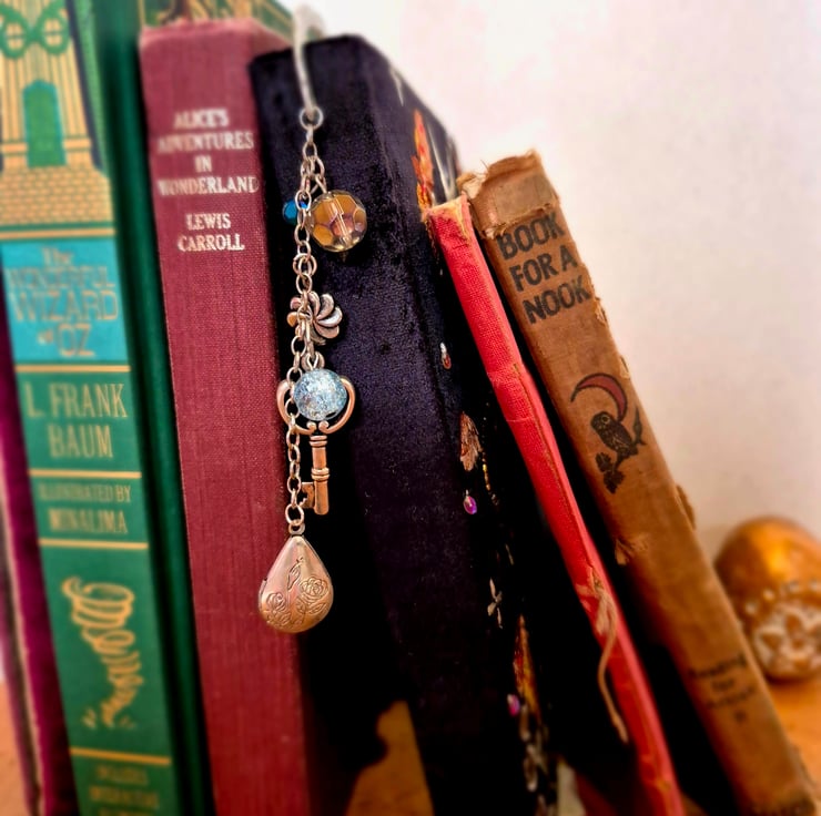 Handcrafted metal bookmark created using unique findings. Each bookmark is one of a kind. I'm always on the lookout for unusual findings whilst out and about which means that each piece has its own story to tell, adding extra charm.