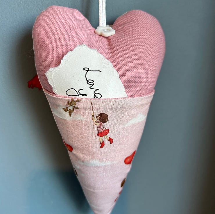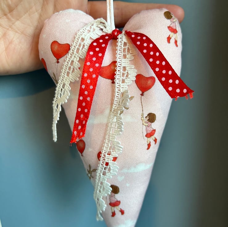 Give a loved one a handmade fabric heart decoration for Valentines, Mothers Day or just because you care.