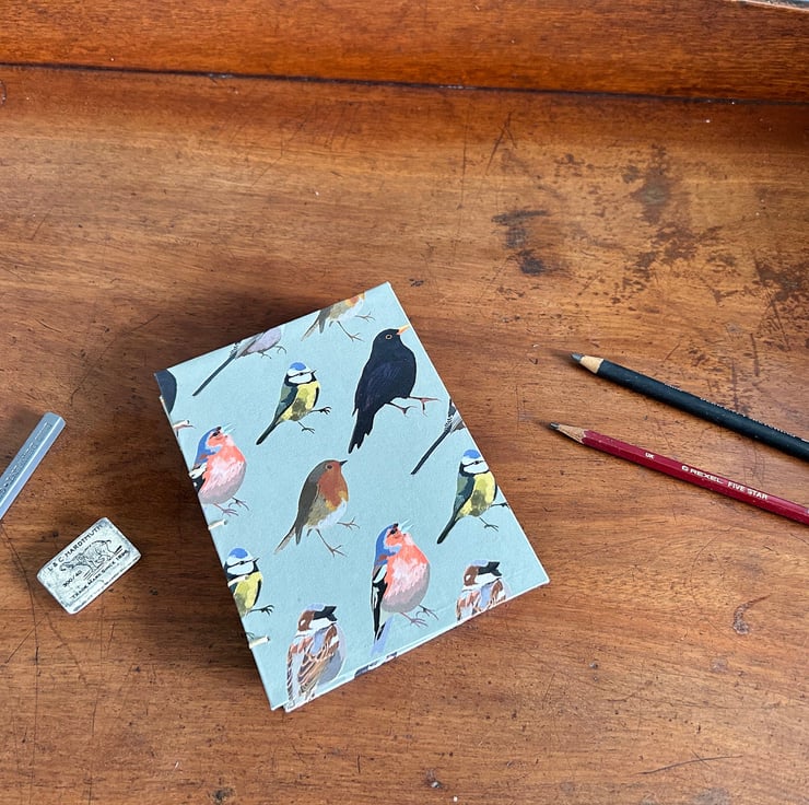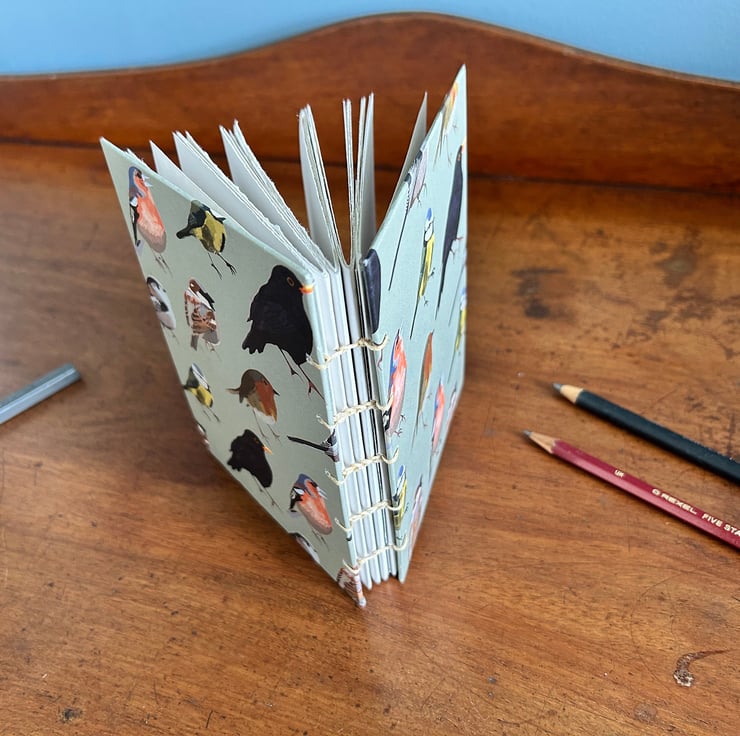 Birds, Coptic bound sketchbook, sketchbook, notebook, hand bound book, book, bir