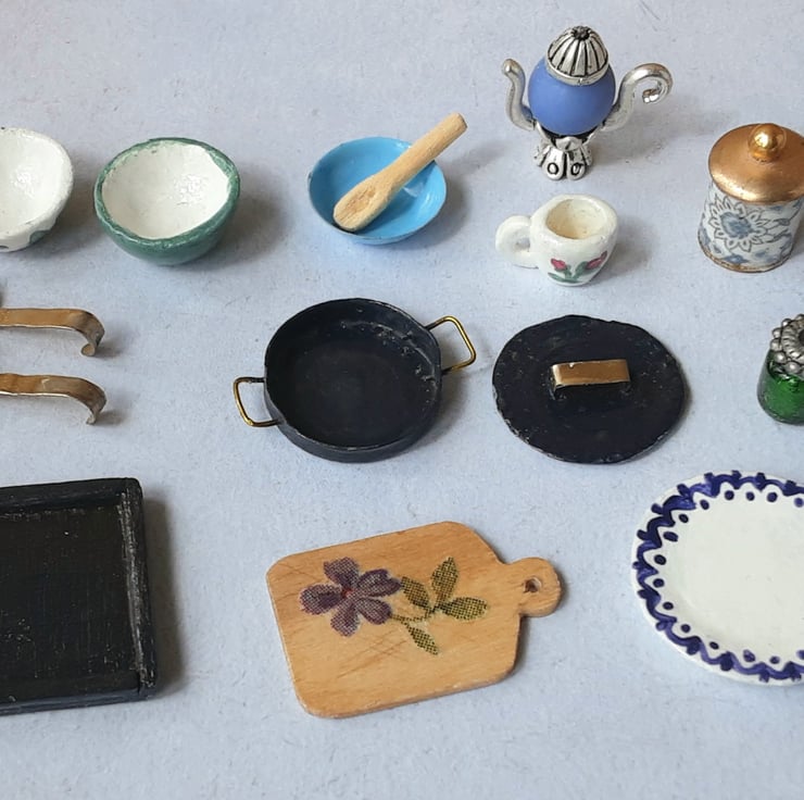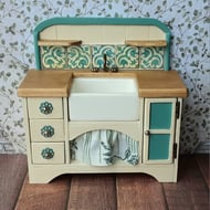 Full of rustic charm, this 1:12 scale unit and accessories have been designed and handmade by me, so are completely unique.