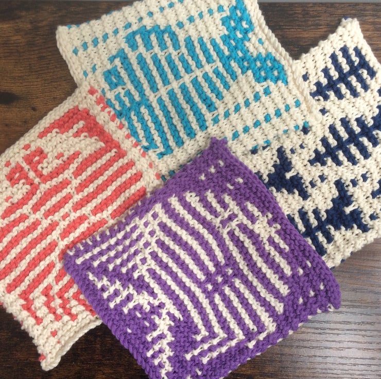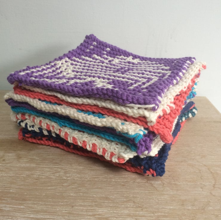Each wash cloth is knit in 2 contrasting colours of Stylecraft cotton DK classique 50 grams ( 92m 100 yards)