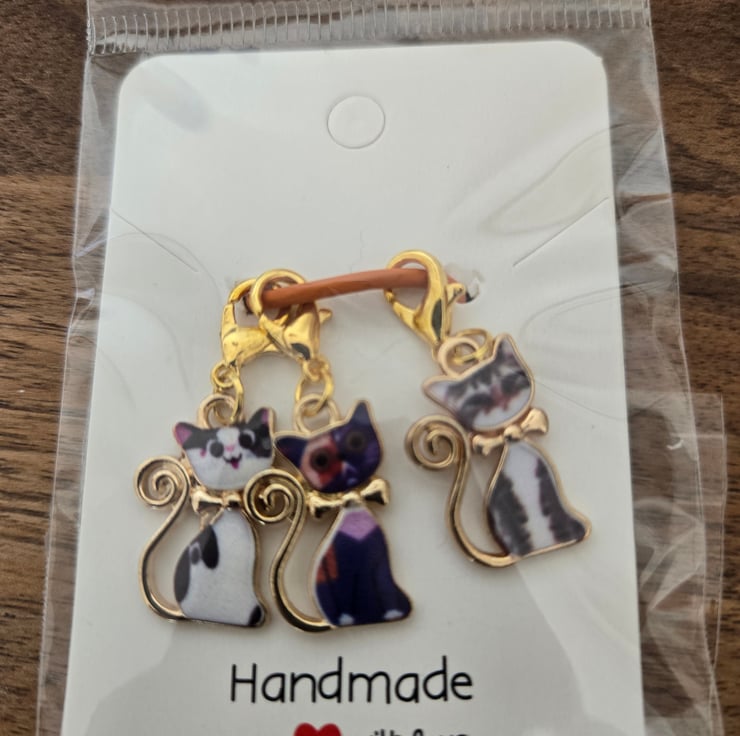 Set of 3 novelty cat stitch markers ideal for crocheted save your place and save work all on a novelty stitch markers