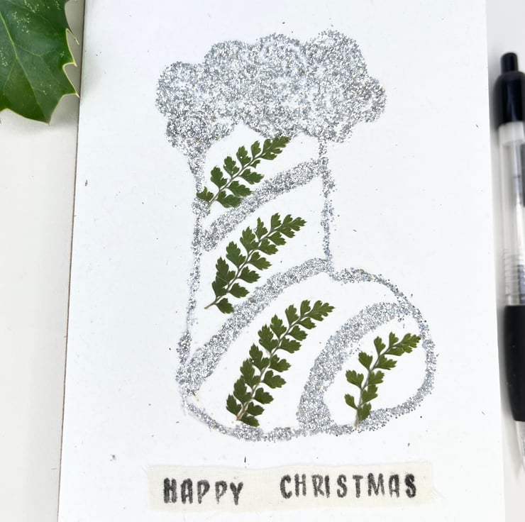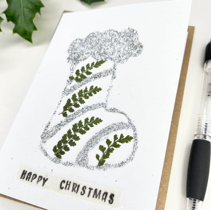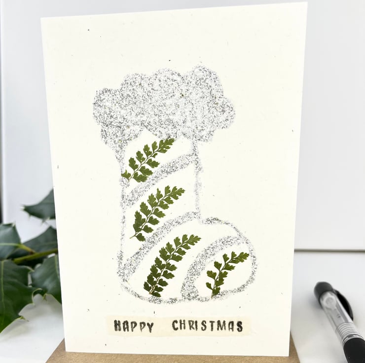 This lovingly handmade Christmas card is made using pressed ferns from our garden and biodegradable glitter.