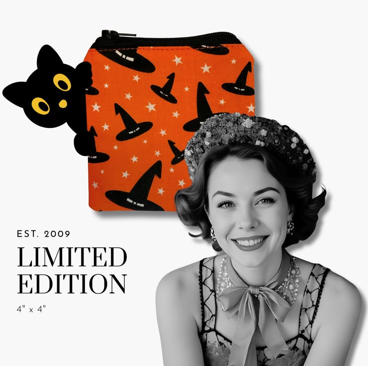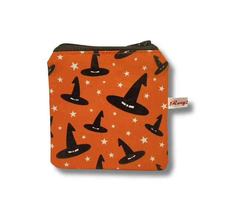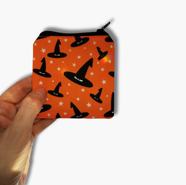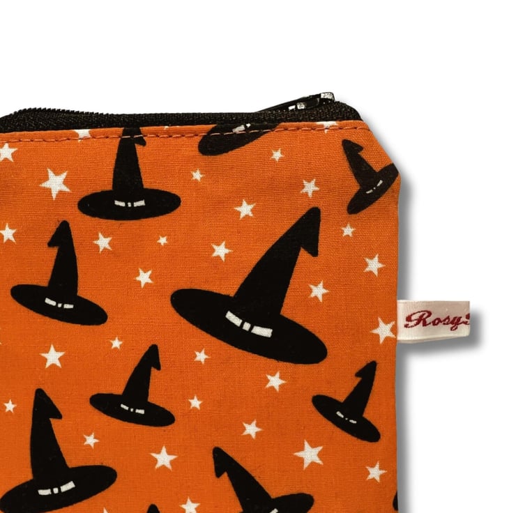 Super Cute Witches hat mini zipped purse...perfect for storing stitch markers...buttons...tape measure...lip balm....coins... fully lined and lightly interfaced